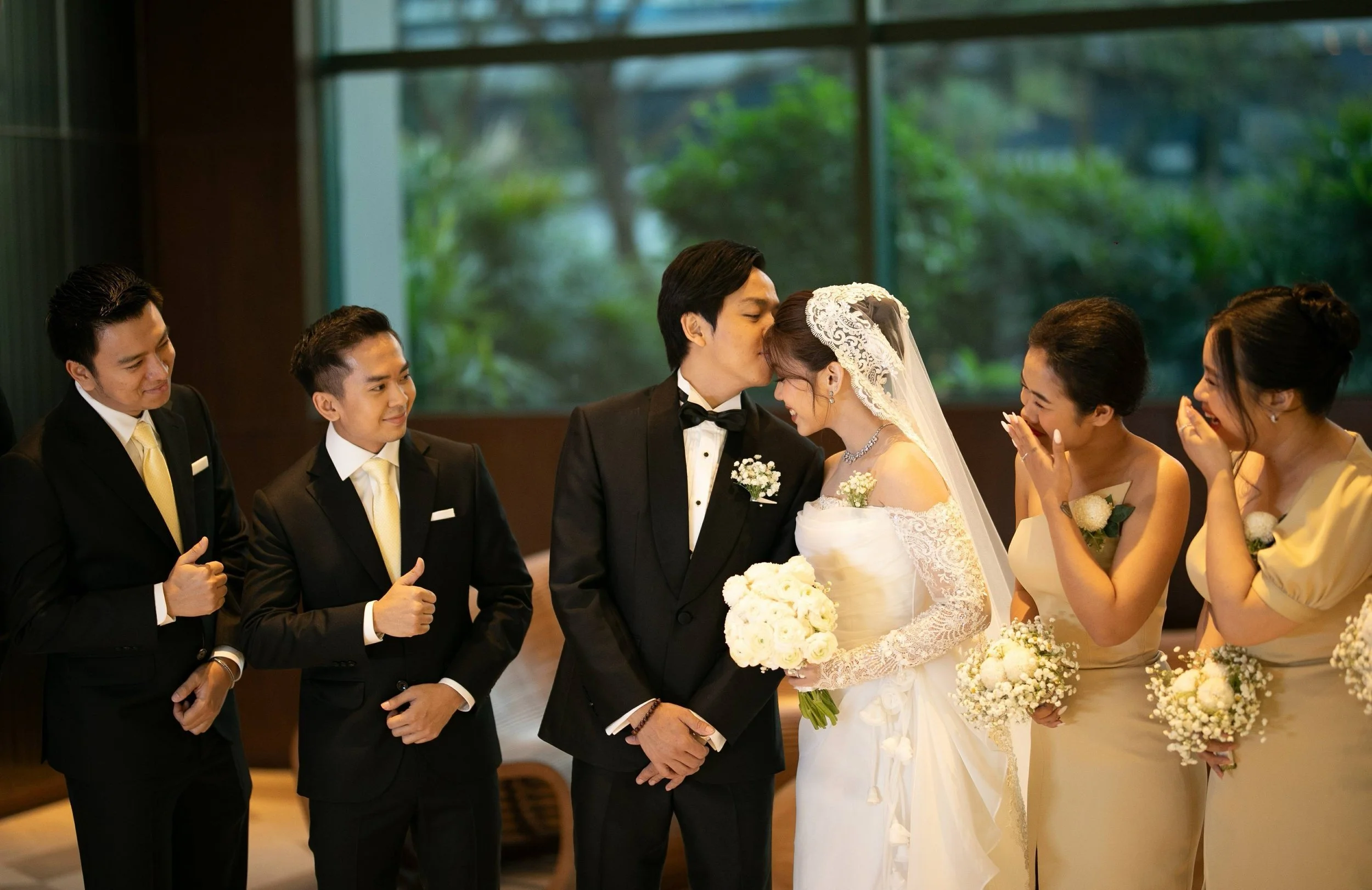 Experience timeless elegance with our wedding suits. Handcrafted in Yangon since 1968, our bespoke attire ensure grooms look impeccable on their special day.